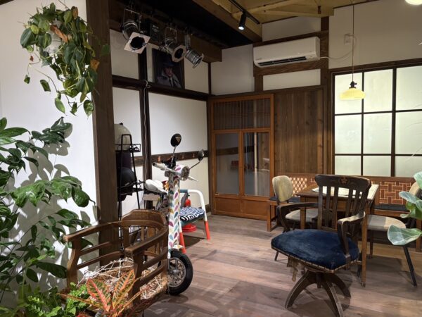 もともと紳士服専門店だった建物をリフォームし、2階が客室になっています。