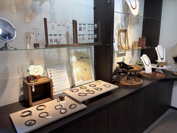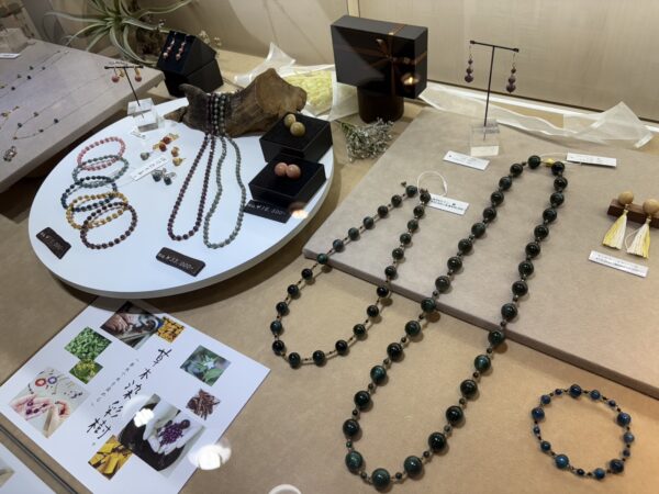 木珠でつくられたアクセサリーの販売やアクセサリー作製体験なども
