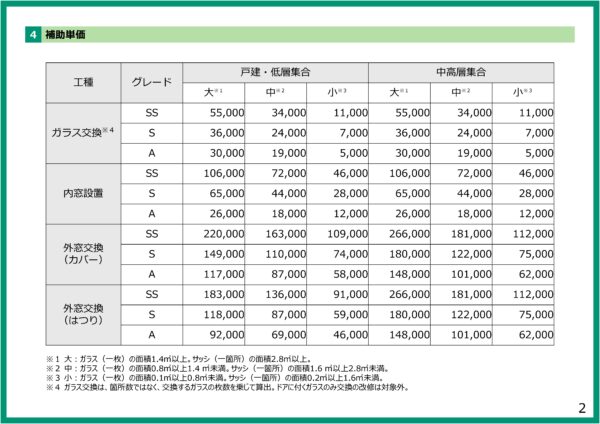 窓の性能やサイズに応じて補助額が決まり、複数の窓を同時に工事することで、補助額の合計もアップします。