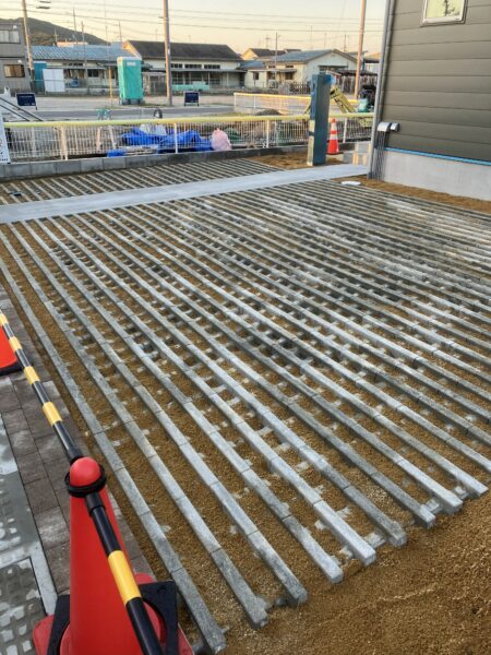 芝の生育に適した形状で緑化率67%を実現させた緑化舗装材です。