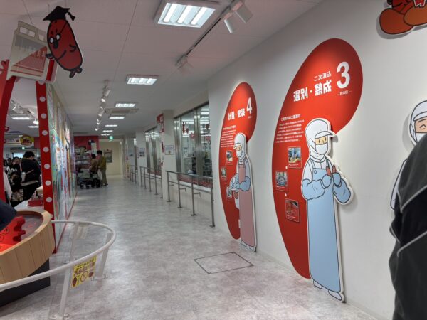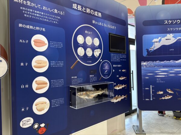 中へ入ってみると、めんたいこについての展示や工場見学ができました。