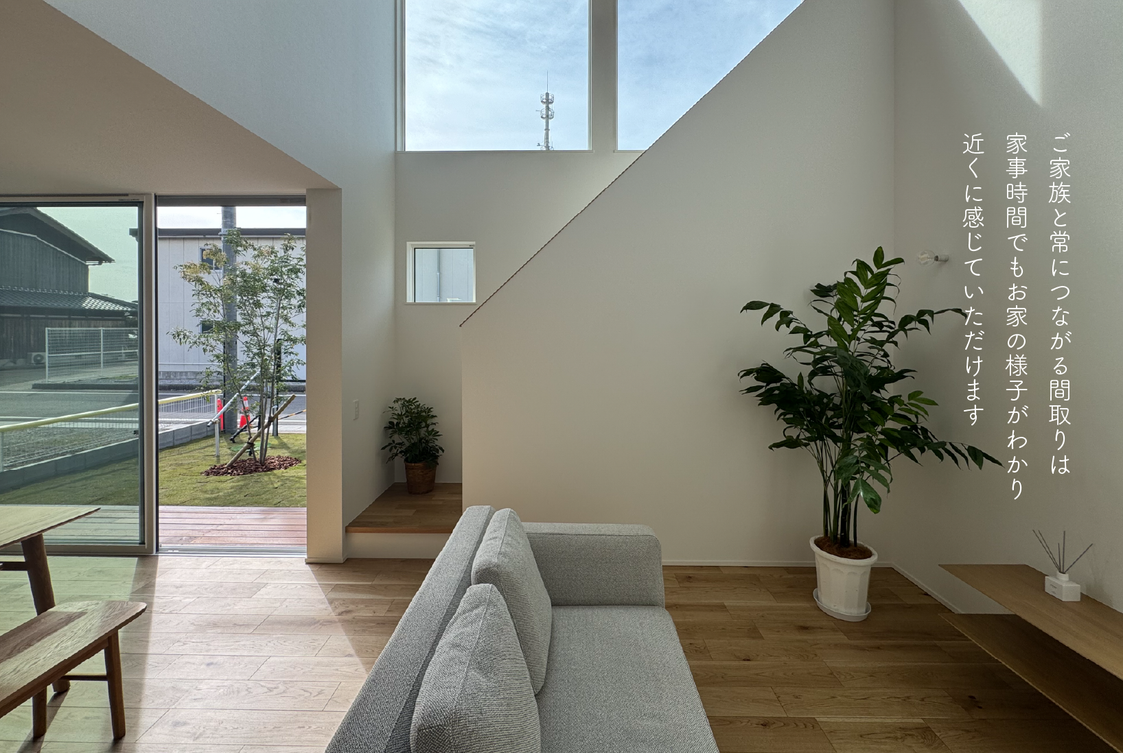 滋賀県東近江市の建売住宅です 大きな吹抜けとお庭とのつながりを持ったLDK 質感とメンテナンス性に優れた突板フロア 大開口のFIX窓から注ぐ陽と 吹抜けのレッドシダー無垢天井の香り 大きなお庭でBBQや水遊び楽しむご家族の声 お家にいながら時の流れを忘れさせるような非日常の空間を ご提供させていただきます |